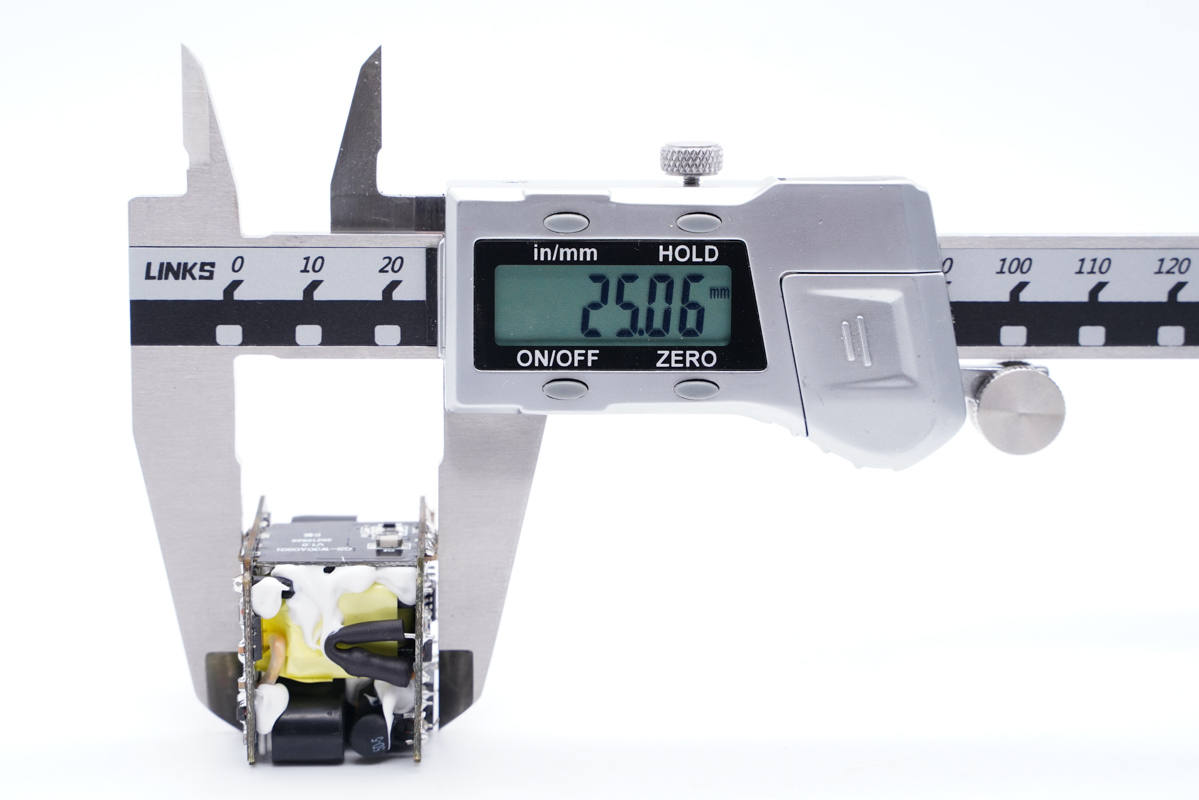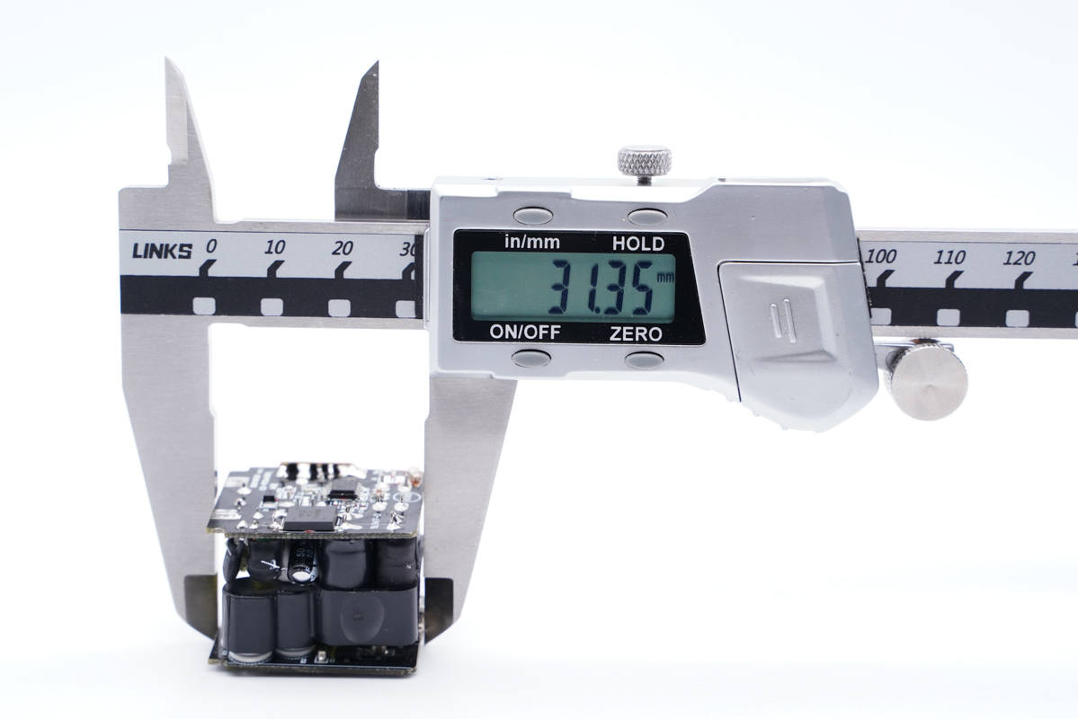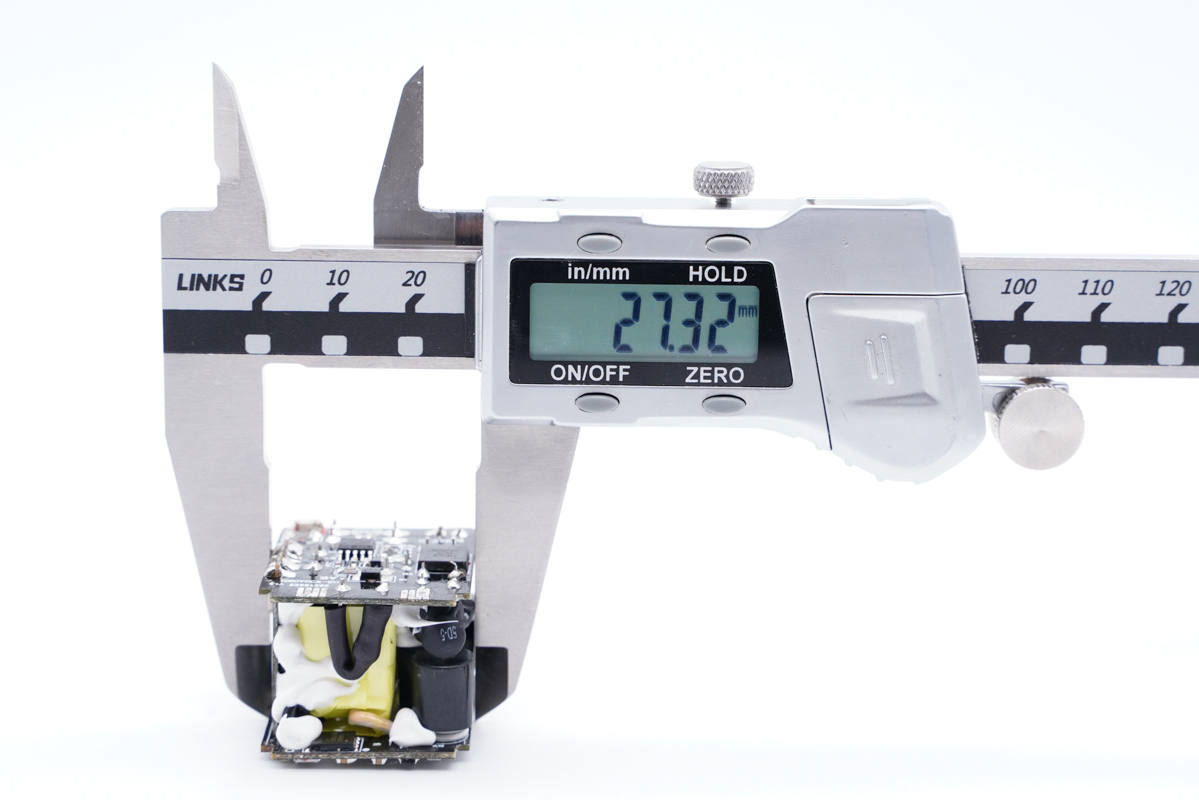 厚度為32.08mm。通過三維可以算得充電器體積約為35.97mm,若按30W功率算,功率密度為0.83W/cm3;若按33W功率算,功率密度為0.92W/cm3。