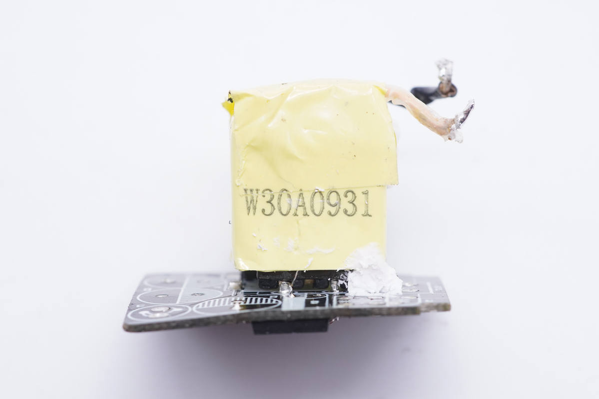 變壓器特寫,使用絕緣膠帶嚴密包裹。