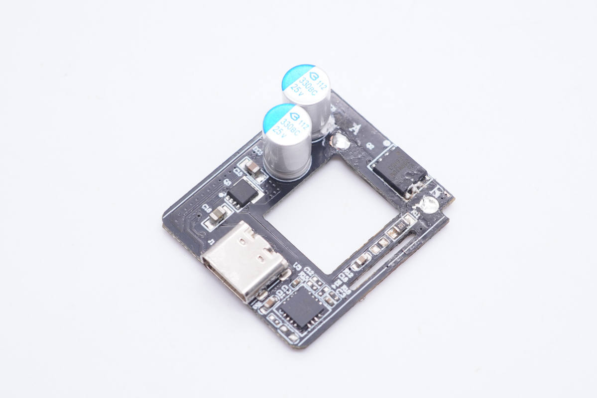 小板另一面設有同步整流管、濾波電容、協議芯片以及輸出VBUS開關管。