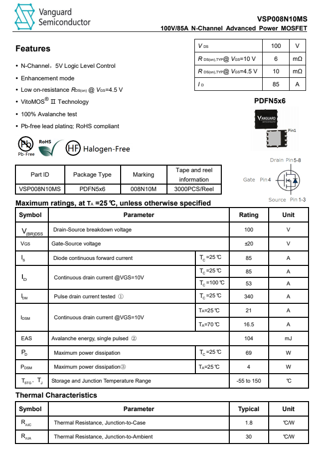 威兆VSP008N10MS資料信息。