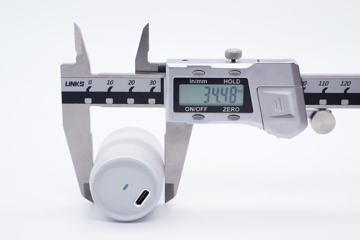 三圍參數上UIBI柚比20W迷你小可樂快充充電器的參數約為34.48x42.05mm。