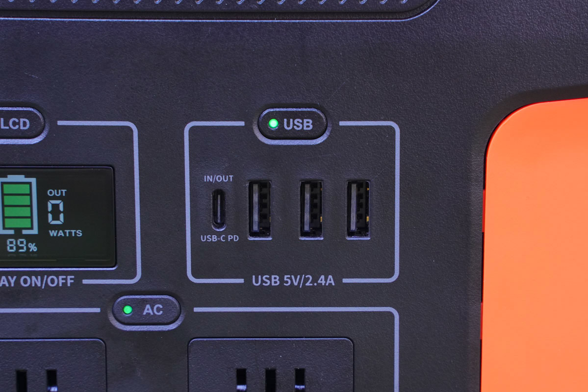 右側為USB充電區域,1C3A共4個USB接口,值得一提的是USB-C支持雙向快充,不僅可以輸出還可以輸入為戶外電源自充電。