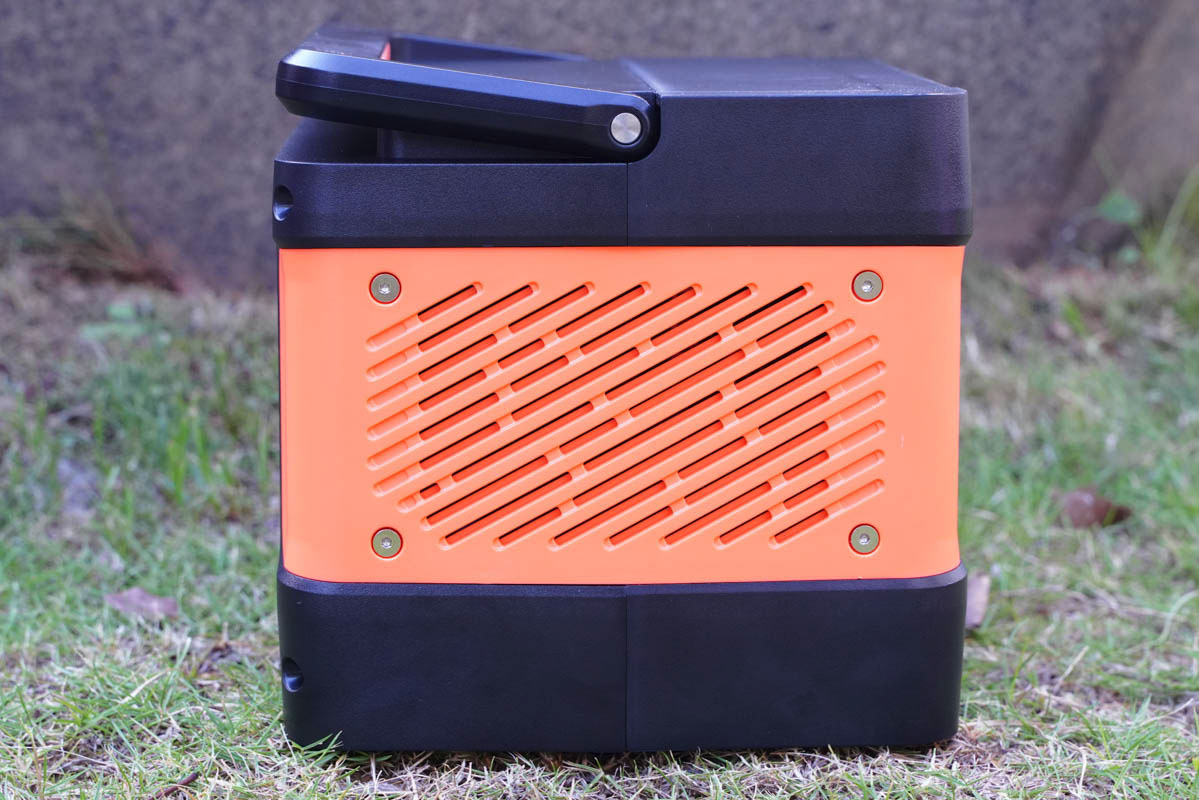 戶外電源的機身兩側是散熱區域,四個角落使用內六角螺絲固定,外殼部分采用柵欄式的設計,既可以保證散熱同時也可以防止異物進入,保證使用安全。