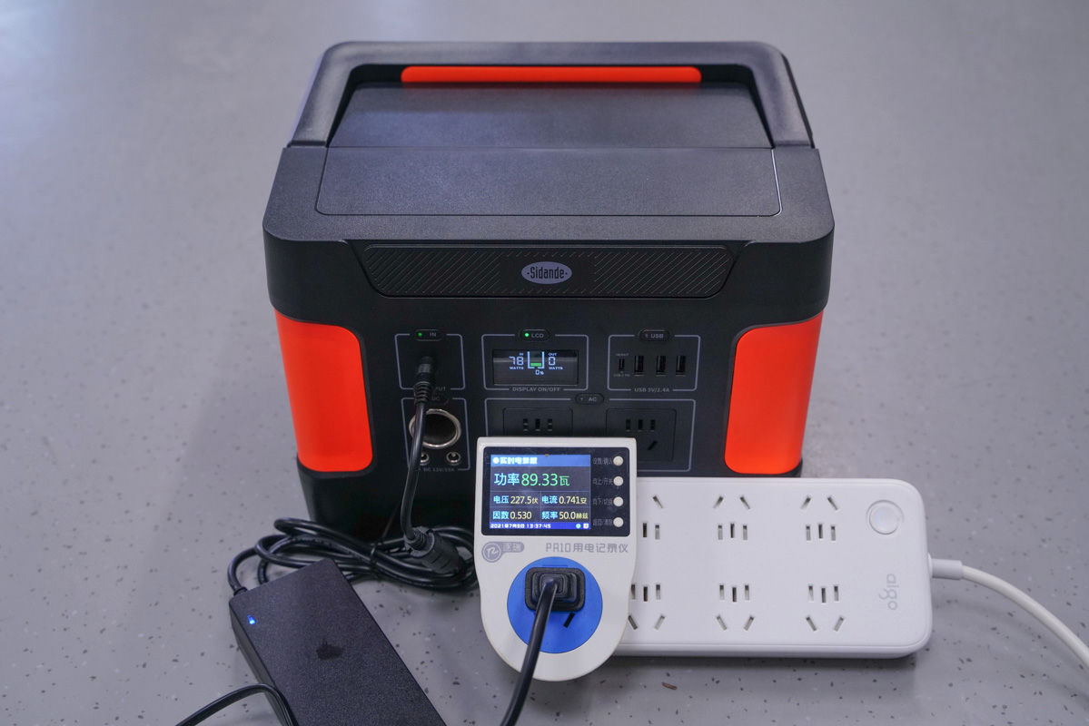 戶外電源支持自帶充電器為自身充電,功率在90W左右。
