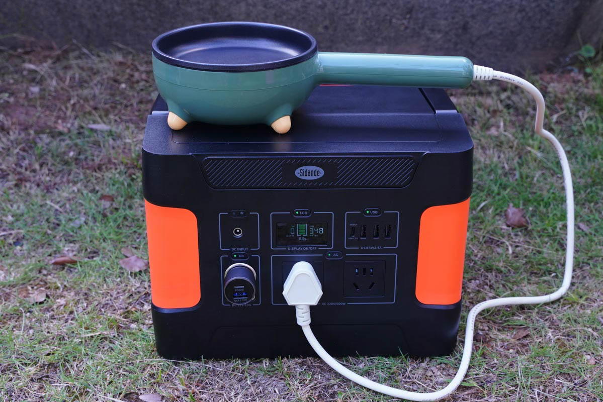 但除了數碼產品外更多用電器還是需要使用AC接口來供電的,這時候就可以使用戶外電源自帶的220V AC輸出接口來供電了,對于煎蛋器這種300W功率的用電器也是可以輕松駕馭的。