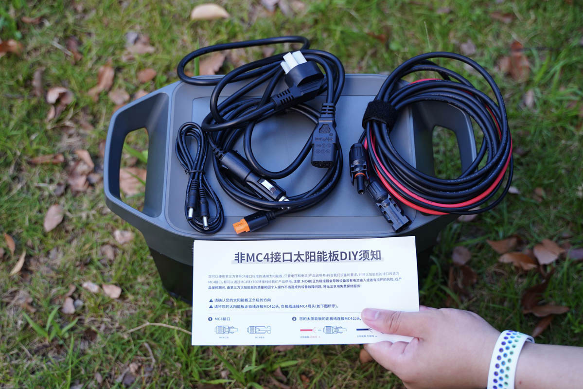 這就是包裝盒內的所有產品了, 德 DELTA mini 戶外電源、AC電源線、DC to DC線材、車充充電線以及用于連接太陽能電池板的線材。