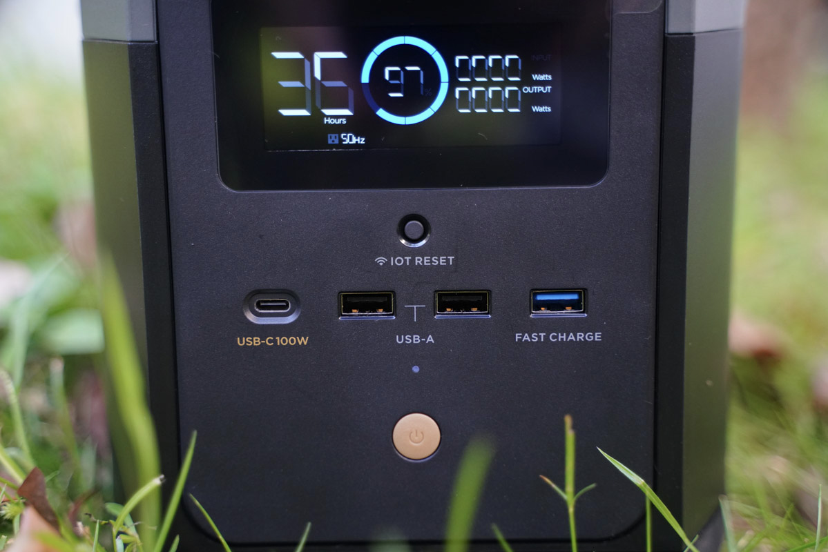 另一側為戶外電源自帶的USB輸出接口,分別為USB-C輸出接口,支持100W PD快充輸出;3個USB-A輸出接口,其中一個內部為藍舌意為支持快充。