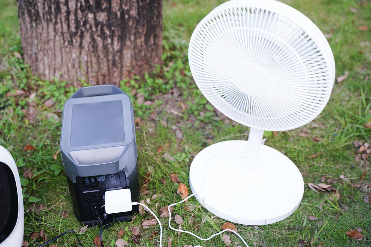 220V AC輸出接口面向的則是更多的家用電器,可以直接使用接口為電風扇供電,出去玩也可以吹風了。