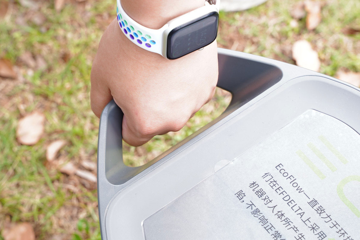 EcoFlow正浩 德 DELTA Max 戶外電源的提手分立兩側(cè),采用突出機(jī)身固定式設(shè)計。