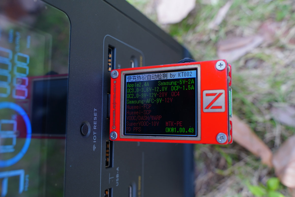 按照慣例有 USB 接口的存在肯定要讀表看一下了,使用 POWER-Z KT002 讀取 USB-A(黑色內(nèi)舌)的快充協(xié)議,實測支持 Apple2.4 充電。