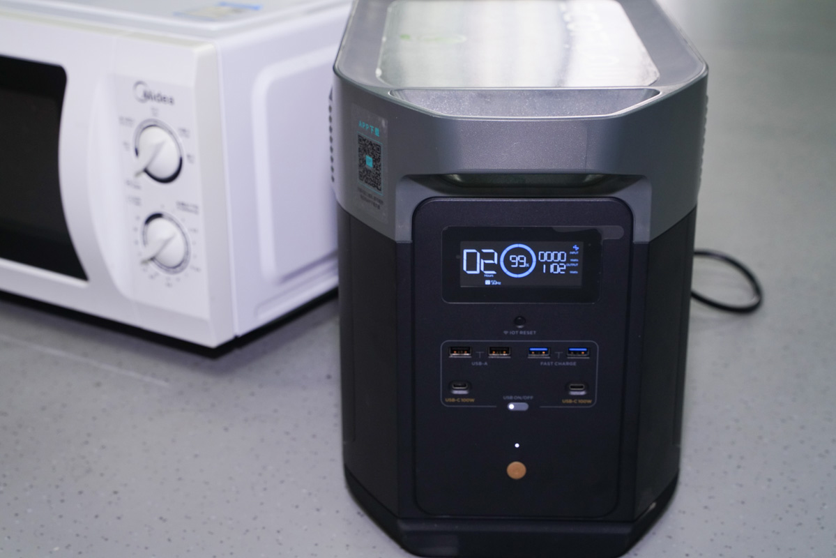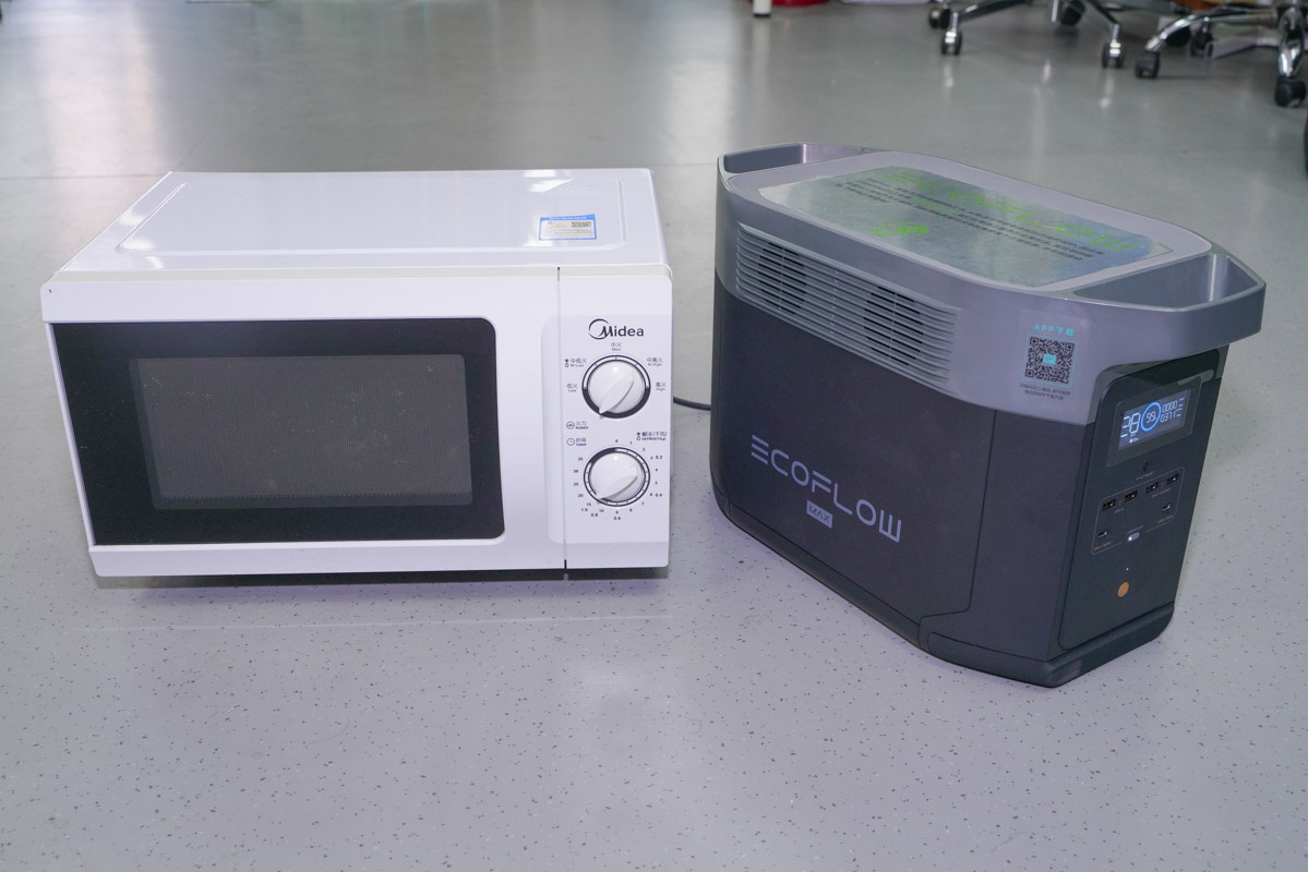 小編實際使用微波爐測試測試輸出功率可以達(dá)到 1100W,為微波爐供電對于EcoFlow正浩 德 DELTA Max 戶外電源來說是小菜一碟的事情。