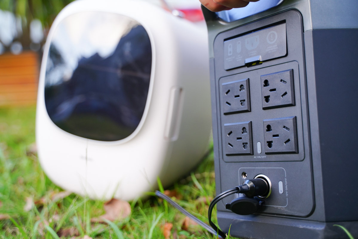 哦,對了,除了220V AC插孔還可以使用車充輸出接口搭配倍思車載冰箱自帶的線材為其供電。