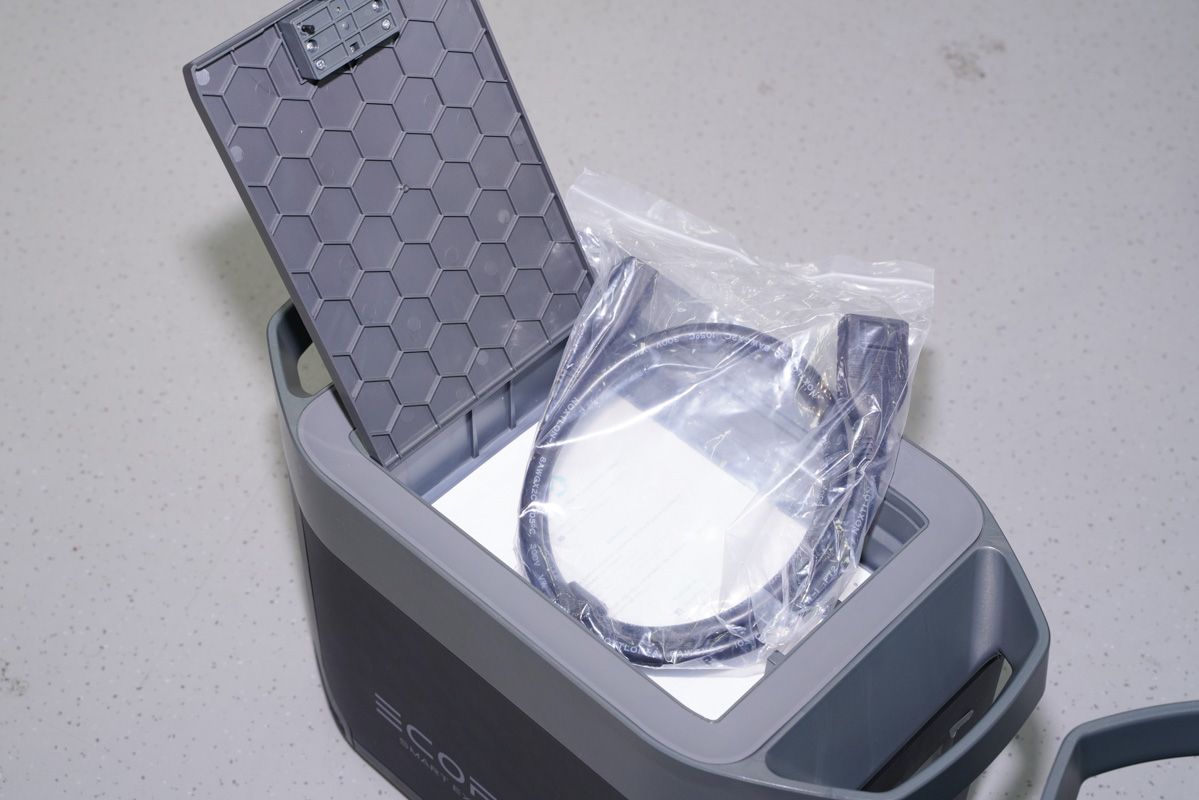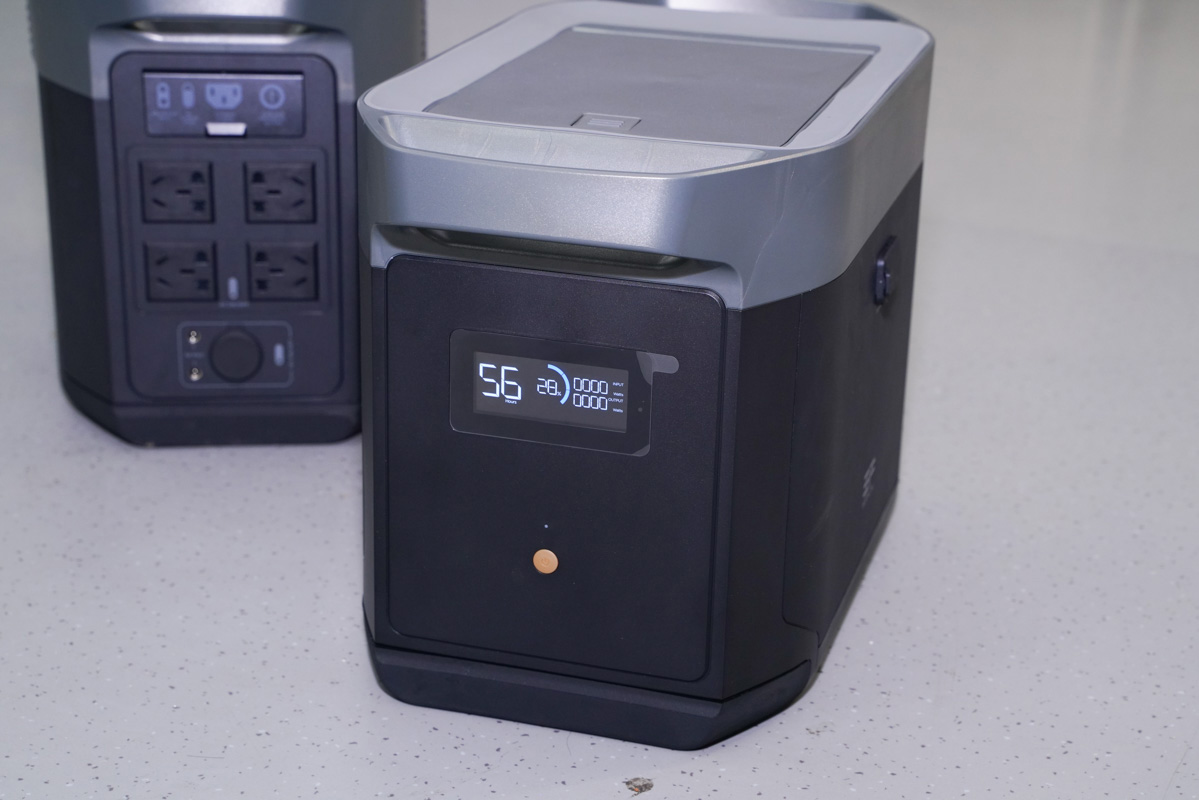 加電包體積略小,正面均帶有官方 EcoFlow的品牌 Logo,可以理解為加電包在主機(jī)的基礎(chǔ)上去掉了電池外的其他組件。