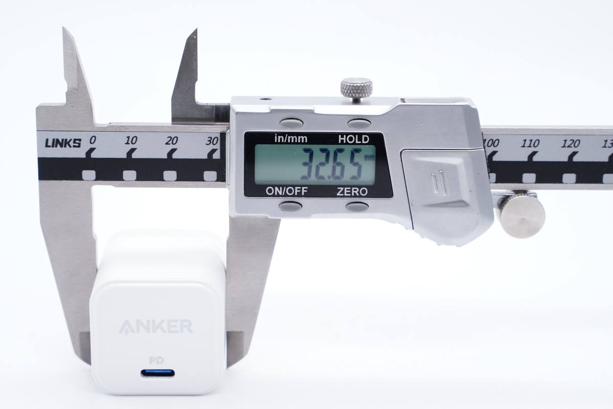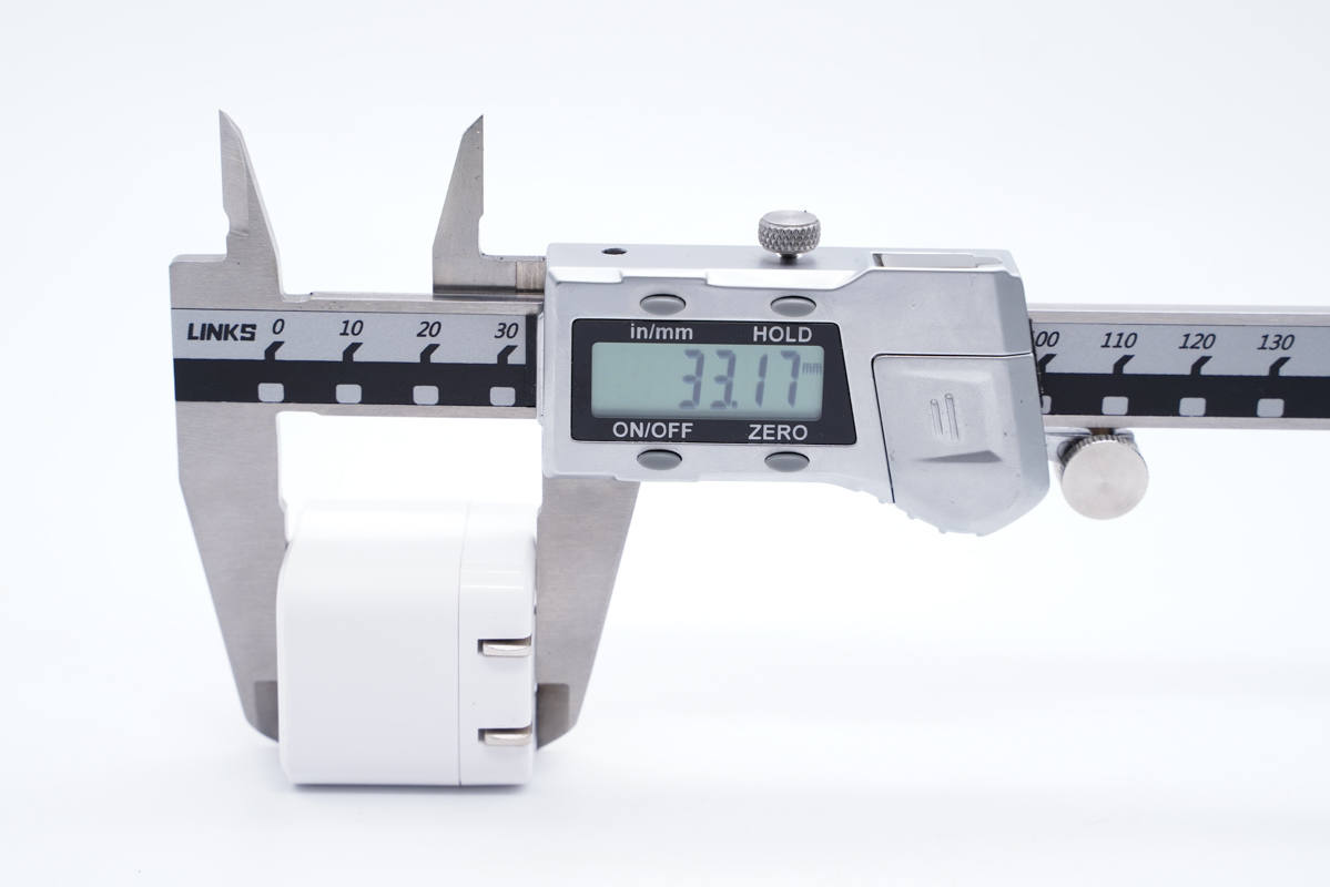 實測充電器機身高度為33.17mm。