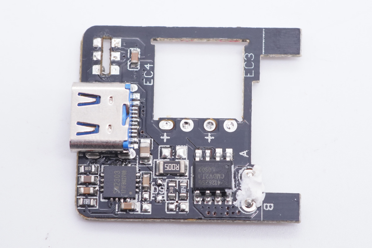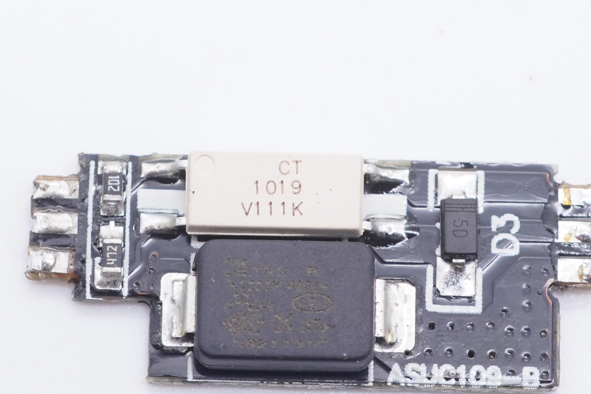 輸出端小板背面設有VBUS開關管以及濾波電容。