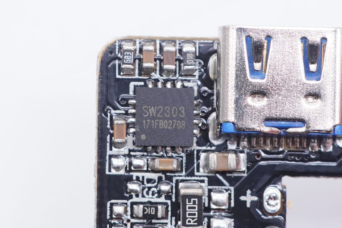 協議芯片采用珠海智融SW2303,通過高通QC5認證,是業內第一顆非MCU架構的QC5認證協議芯片。這是一款高集成度USB Type-C/Type-A接口快充協議芯片,支持PD、QC、FCP、高低壓SCP、AFC、SFCP以及PE等主流快充協議;支持光耦反饋和FB反饋兩種工作模式;支持4KV ESD HBM。