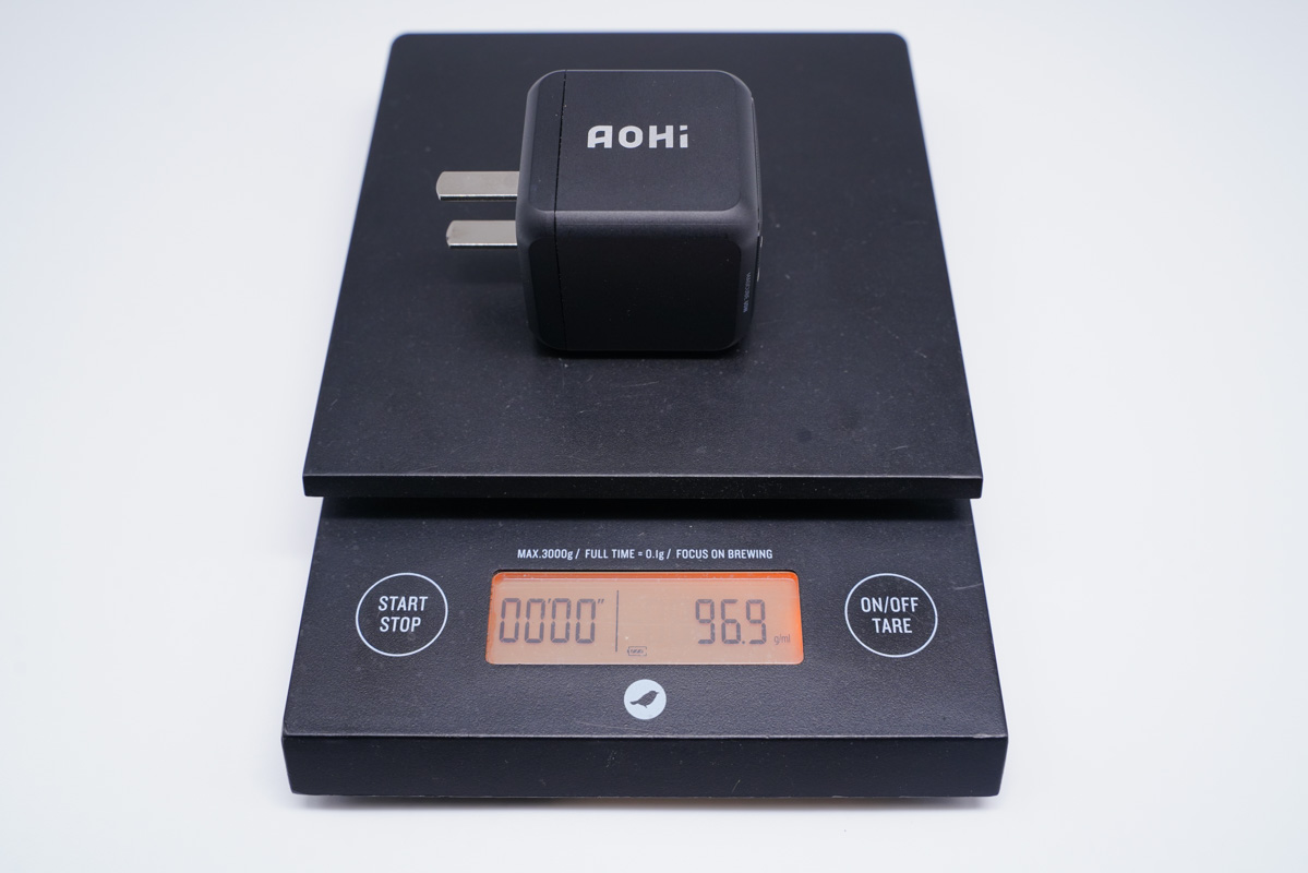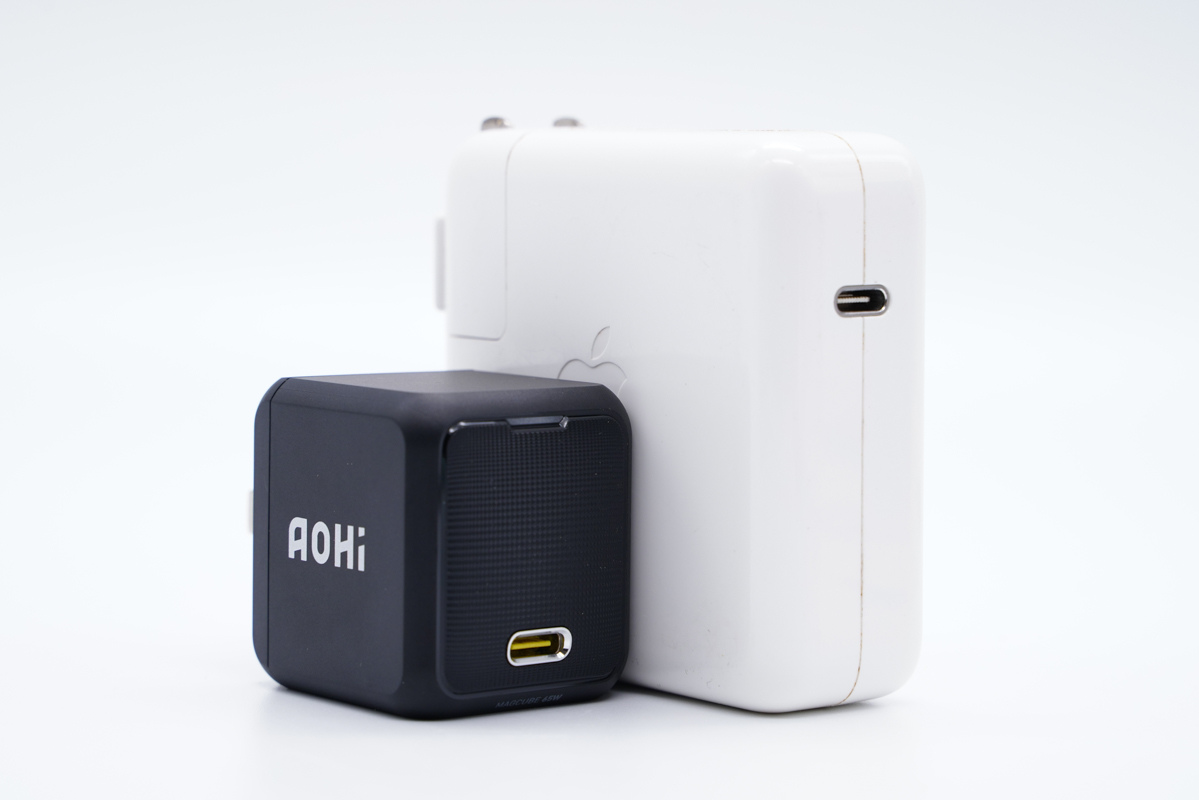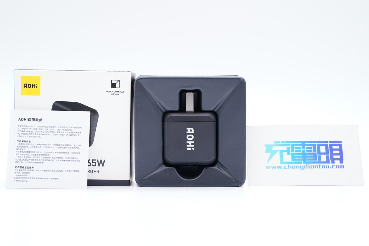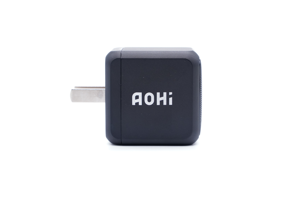 AOHi新款65W氮化鎵充電器外觀造型較為方正,面與面交界處過渡圓滑。