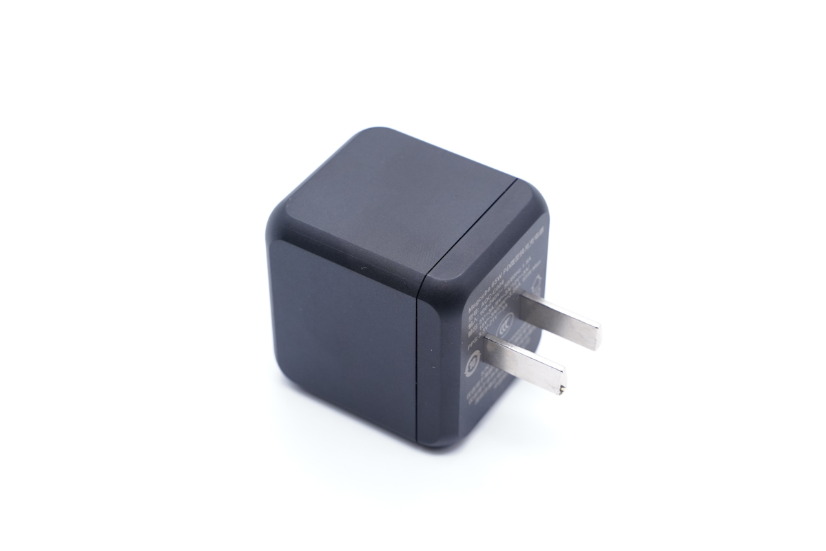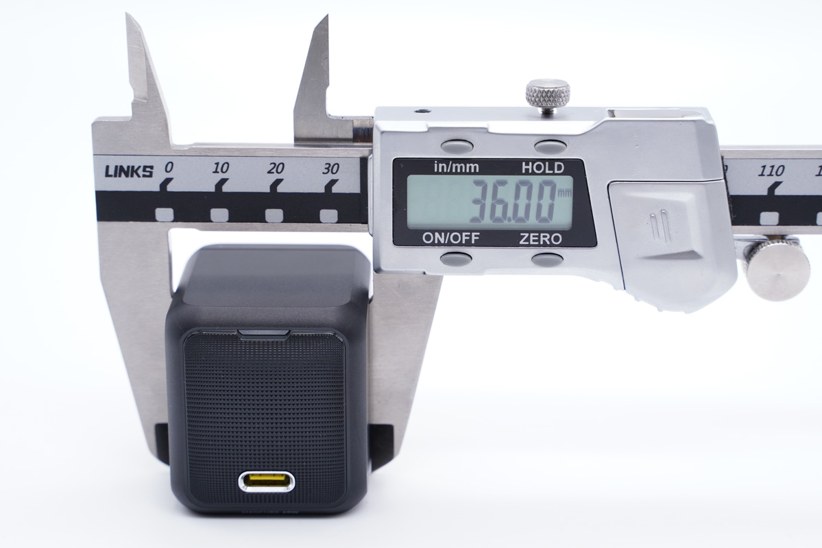 由此可以得出充電器的三圍參數為41x42.13x36mm,充電器的體積約為62.18cm3,以最高輸出65W計算,功率密度約為1.04W/cm3。