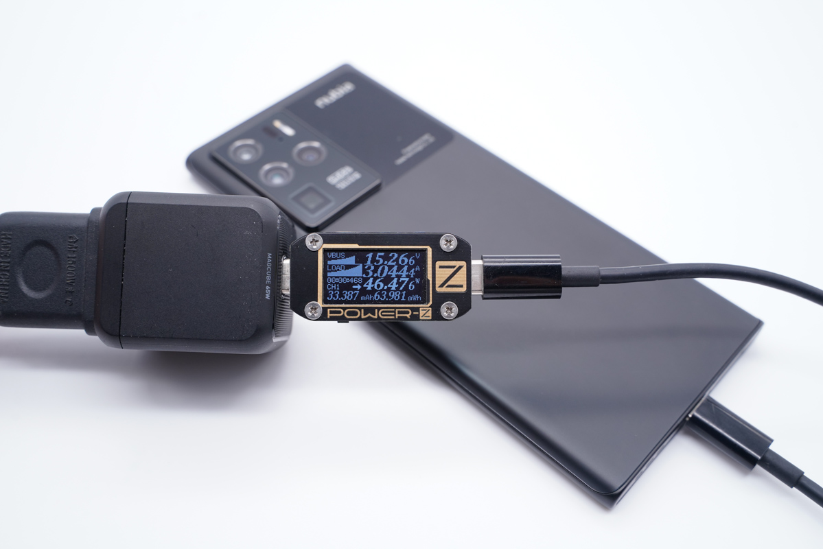 充電方面,使用AOHi Magcube 65W氮化鎵充電器為努比亞Z30 Pro充電,功率為15.26V 3.04A 46.47W。