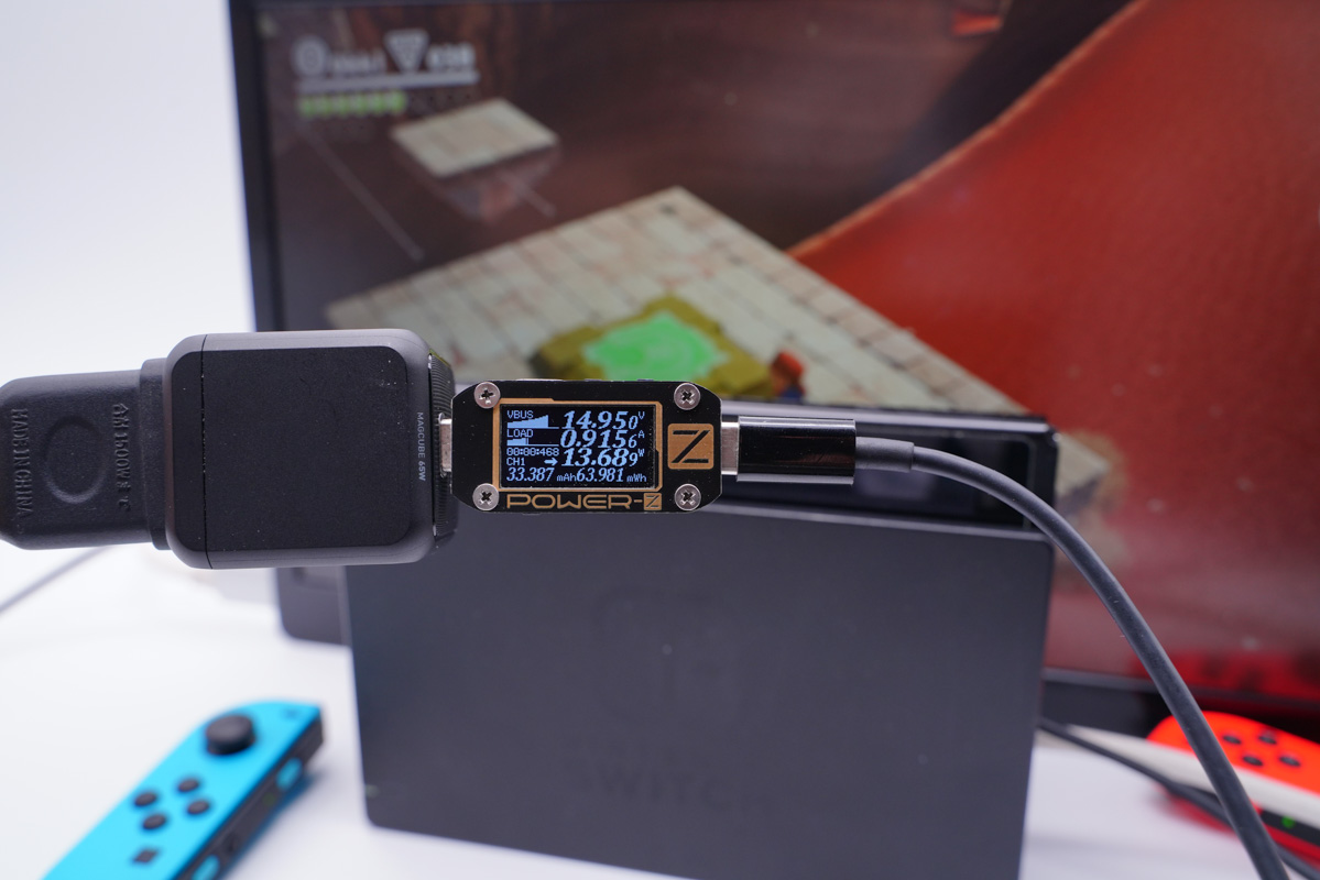 因為充電器支持65W輸出功率,支持15V3A輸出檔位,可以成功激活Switch的底座TV模式。