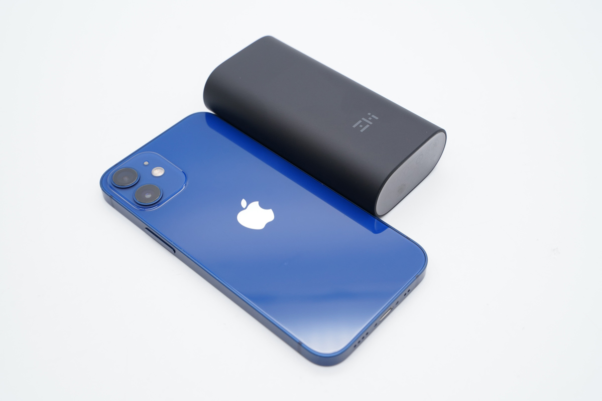 左側(cè)是目前最小的 5G 手機(jī) iPhone 12 mini,屏幕僅為 5.4 英寸,而ZMI 紫米新款雙向快充充電寶 MINI 高配版比 iPhone 12 mini 還要小很多。