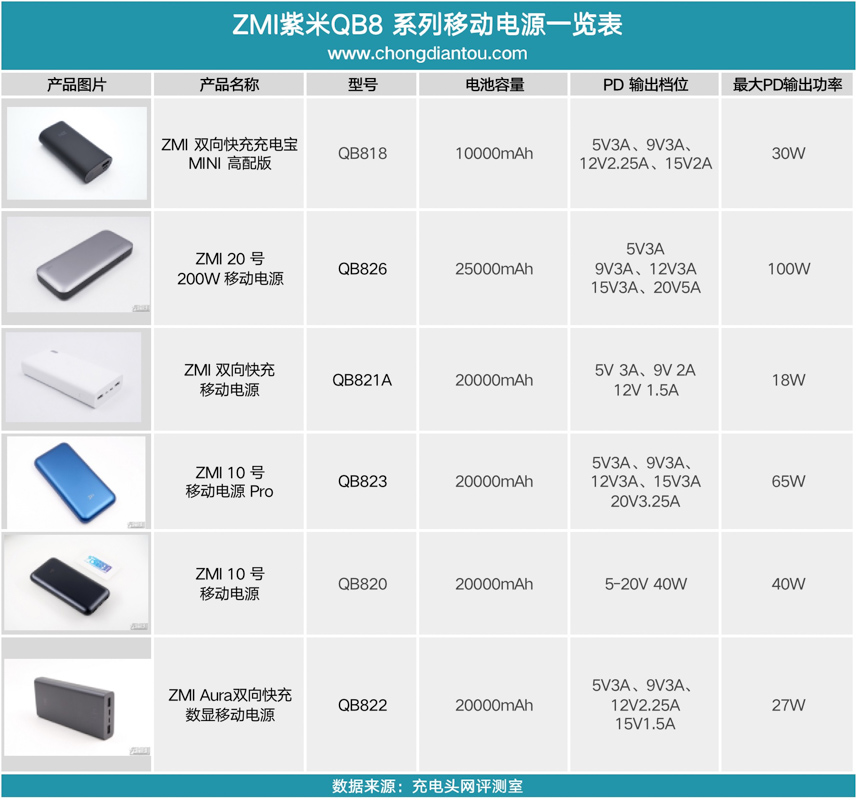 這里小編簡(jiǎn)單的匯總了一下 ZMI 紫米旗下型號(hào)為“QB8”系列的移動(dòng)電源,可以看出 ZMI 紫米在 PD 快充充電寶上已經(jīng)探索了很久,并且從基礎(chǔ)的 18W PD 到最高 100W PD 功率 ZMI 紫米均有相應(yīng)的產(chǎn)品覆蓋。其中 ZMI 紫米 10 號(hào)、ZMI 紫米 10號(hào) Pro 和 ZMI 紫米 20 號(hào)充電寶更是成為了經(jīng)典的產(chǎn)品,廣受廣大消費(fèi)者的喜愛(ài)。
