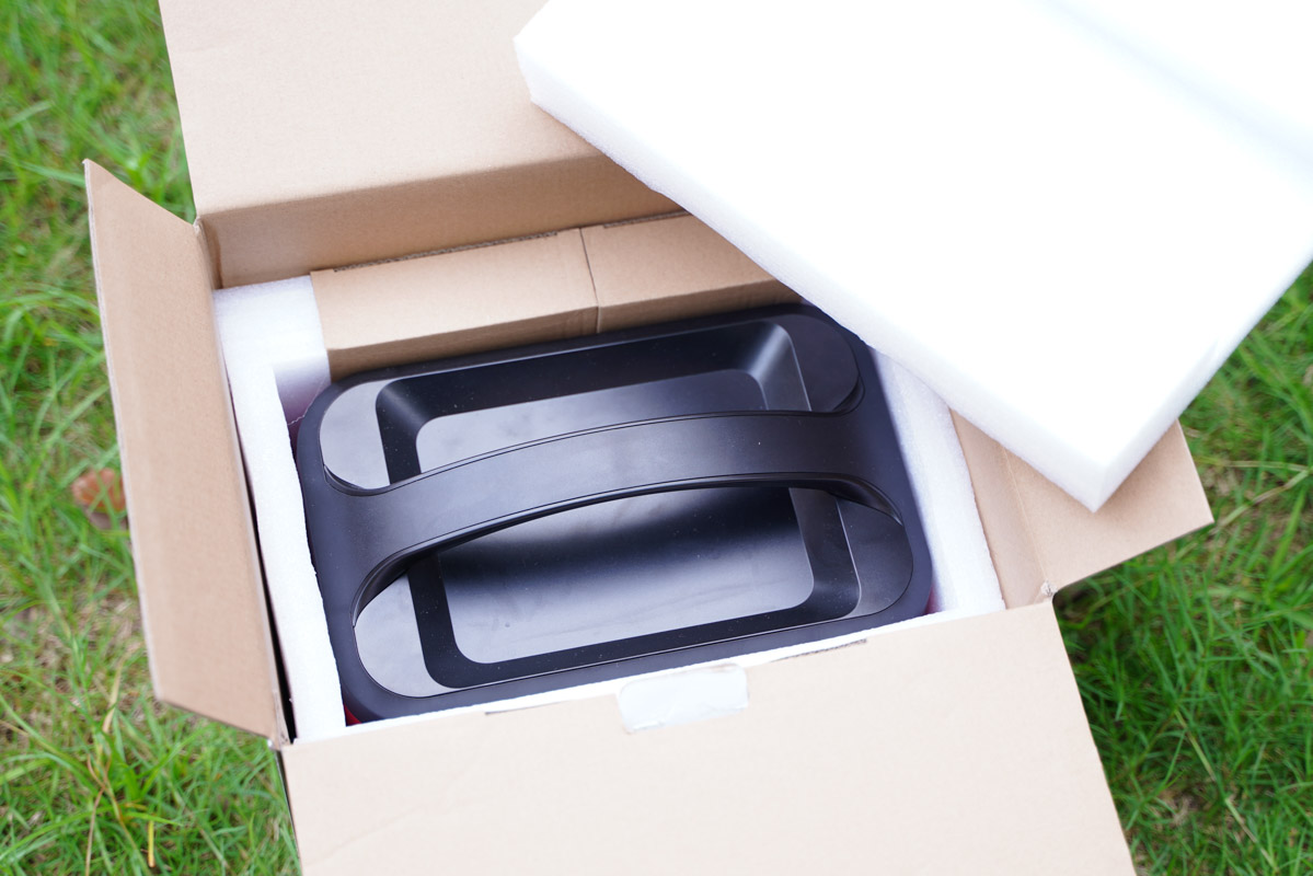 包裝箱內部可以看到戶外電源的四周被厚厚的泡棉包裹著,可以保證產品在運輸中的安全,畢竟是帶電池的產品。