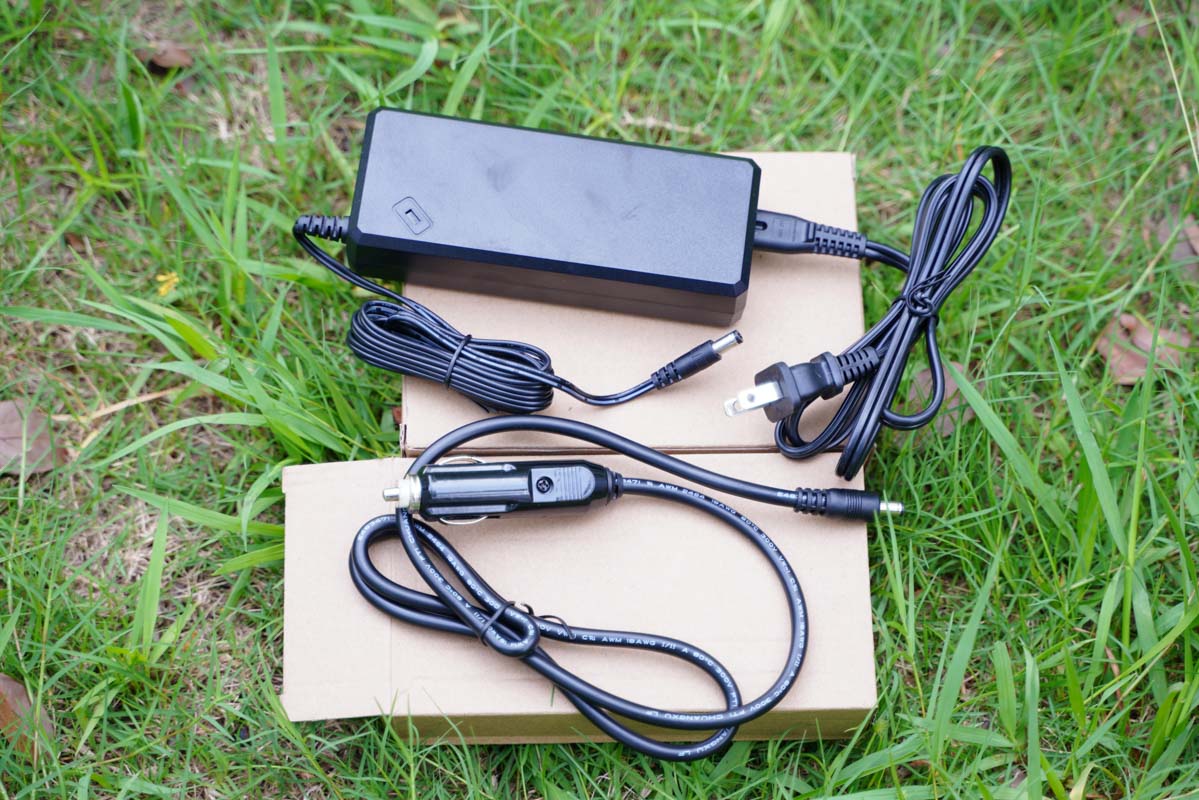 附帶用于市電充電的電源線和用于車載充電的電源線。