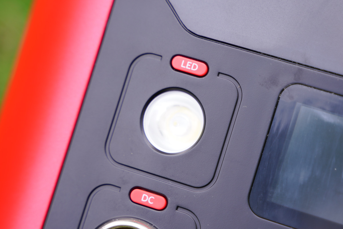 首先來看機身接口面板的左上角,這是一顆LED指示燈,支持三檔調節。在戶外無需另外攜帶照明燈即可實現照明。