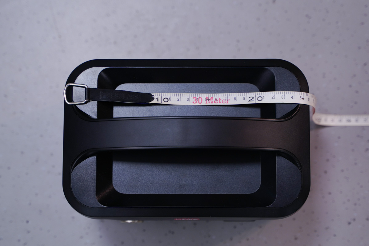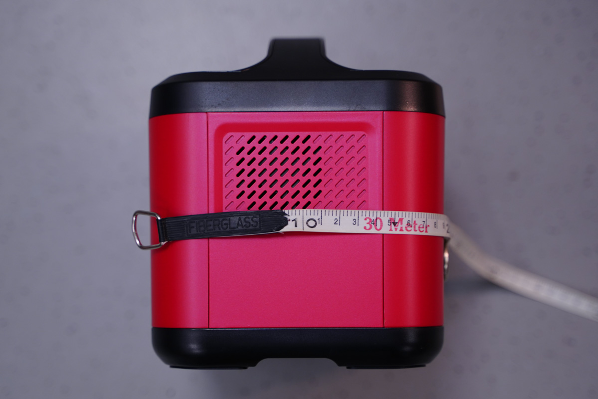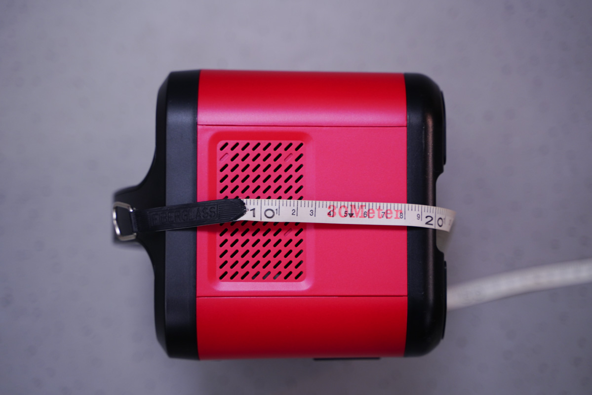 這里使用卷尺簡單的測量了一下戶外電源的機身長度約為25cm。
