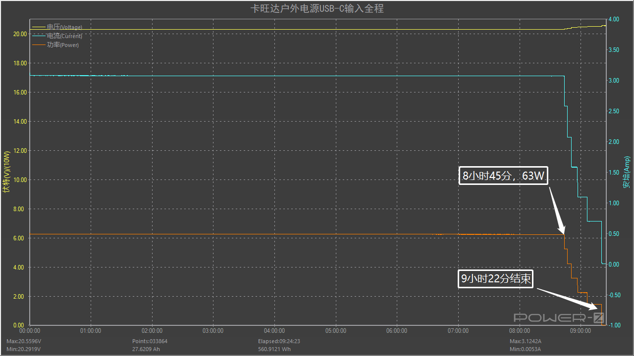 這是通過USB-C輸入的全程,整個測試于9小時22分結束。