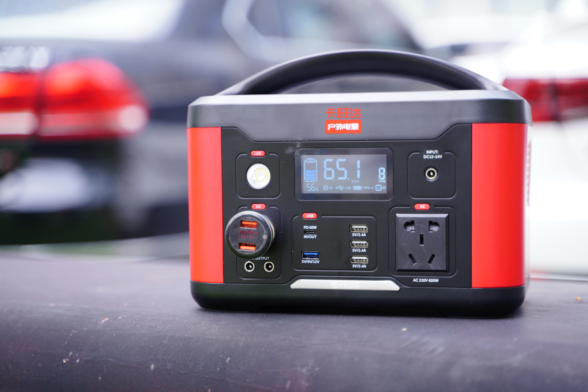 自充電方面,卡旺達電+600戶外電源配備DC輸入接口,支持最高100W的輸入功率。