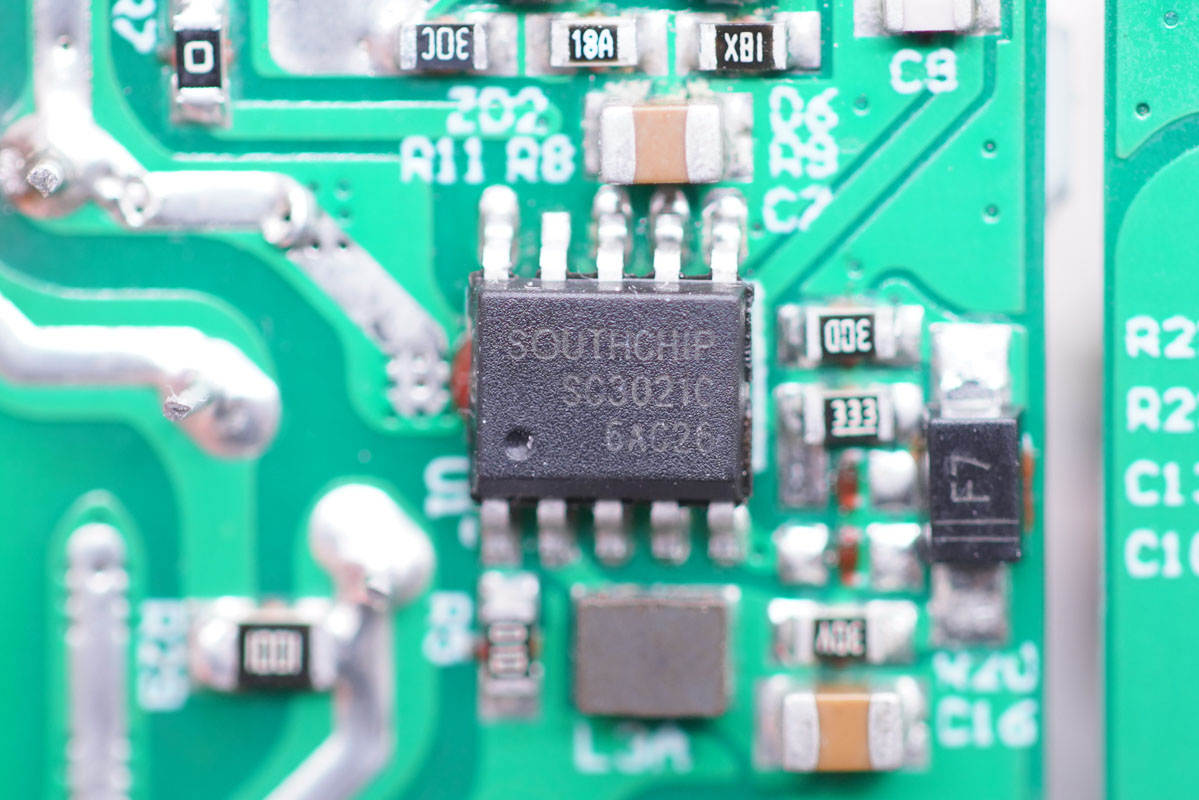 開(kāi)關(guān)電源主控芯片采用南芯SC3021C,滿(mǎn)足各類(lèi)高頻QR快充需求。SC3021C專(zhuān)有GaN直驅(qū)設(shè)計(jì),省去外置驅(qū)動(dòng)器或者分立驅(qū)動(dòng)器件。集成分段式供電模式,單繞組供電,無(wú)需復(fù)雜的供電電路。內(nèi)置高壓?jiǎn)?dòng)及交流輸入Brown In/Out功能,集成了X-cap放電功能。SC3021C最高支持170KHz工作頻率,適用于繞線(xiàn)式變壓器。