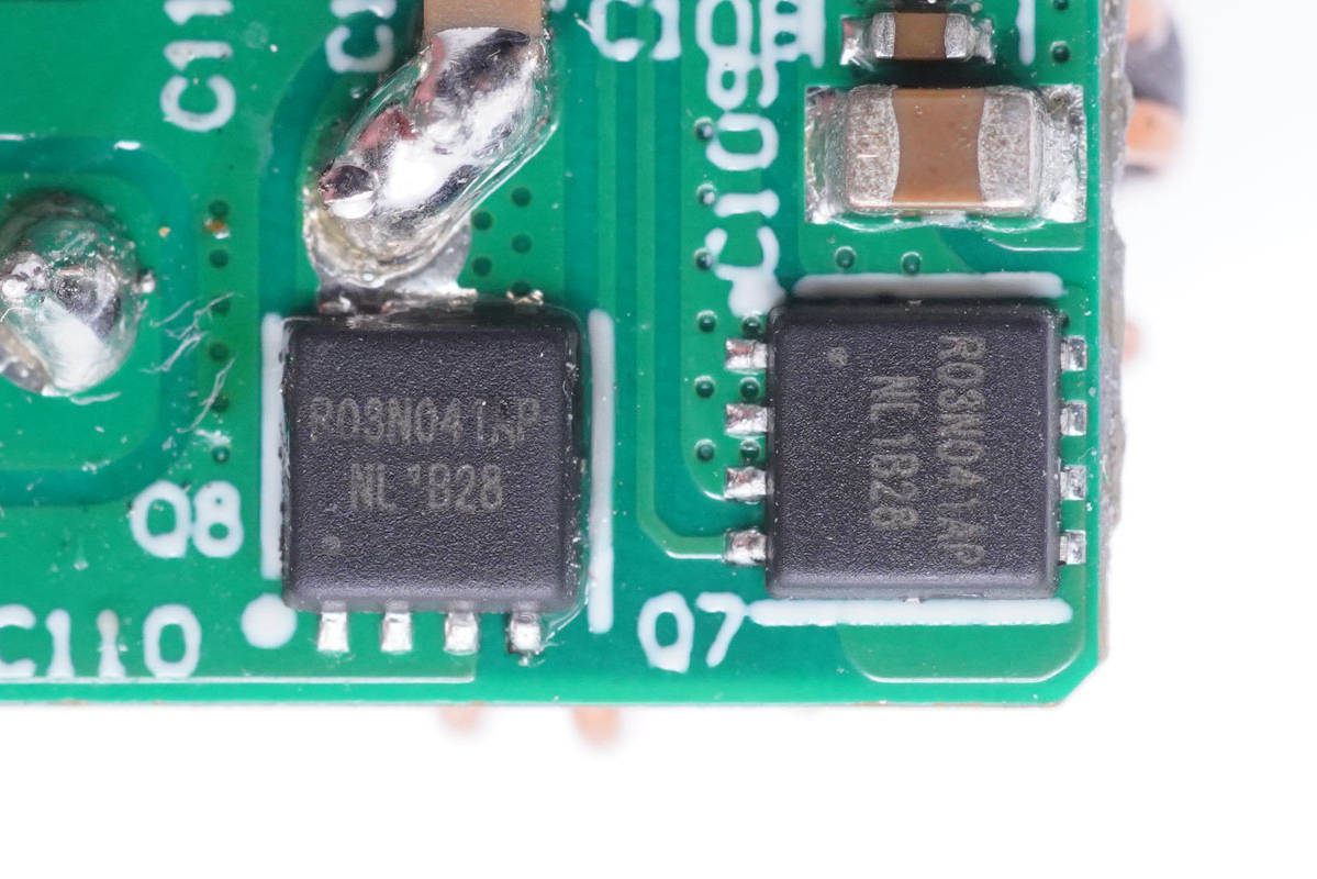 同步整流管特寫(xiě),絲印CWR10041AE。