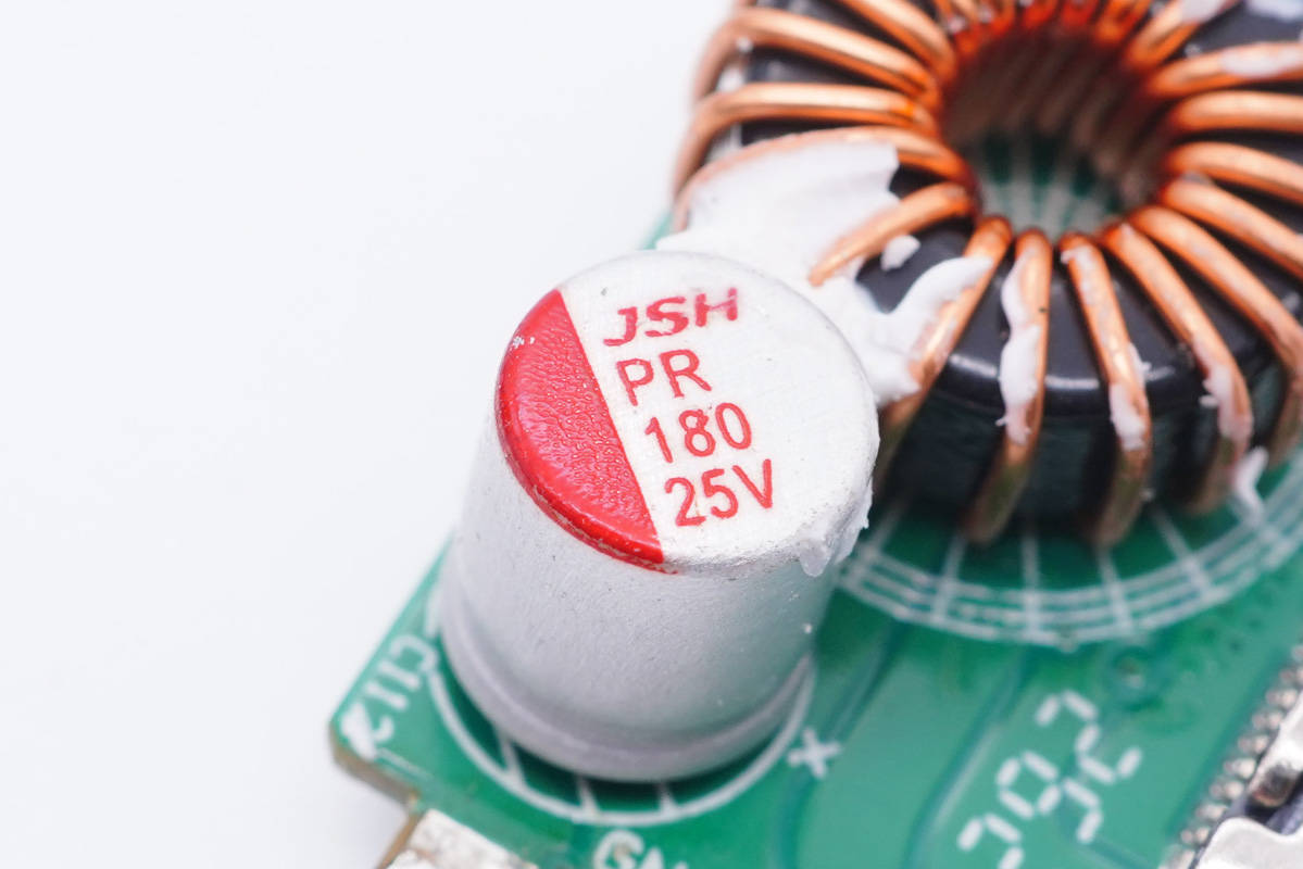 二次濾波固態(tài)電容也是來(lái)自萬(wàn)京源,規(guī)格為25V 180μF。