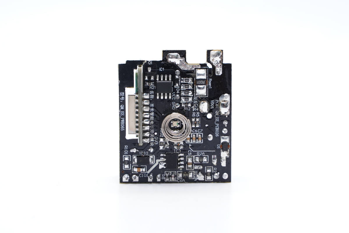 電源線和機(jī)身交界處增加橡膠套抗彎折,內(nèi)部使用三角防拆螺絲和鎖扣進(jìn)行固定,小板上設(shè)有繼電器電路。