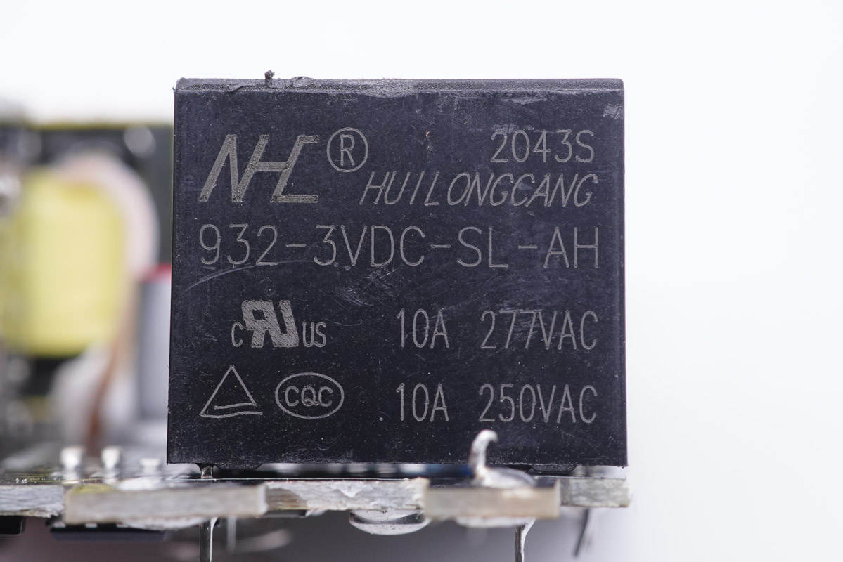 輸出端是一顆繼電器,用于控制插座通電。