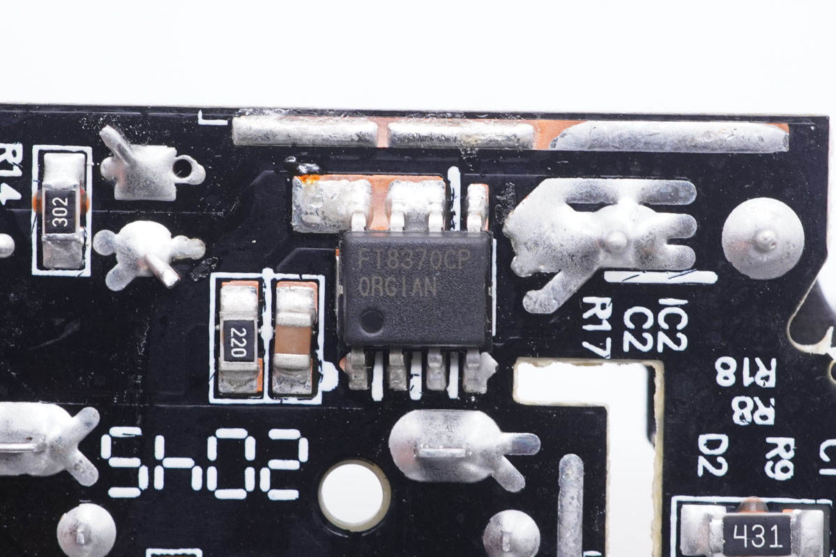 次級(jí)同步整流芯片來自FMD輝芒,型號(hào)FT8370CP,內(nèi)置同步整流管和同步整流控制器,內(nèi)置MOS管耐壓43V,導(dǎo)阻8mΩ,適用于5V3.4A輸出。采用ESOP8封裝。