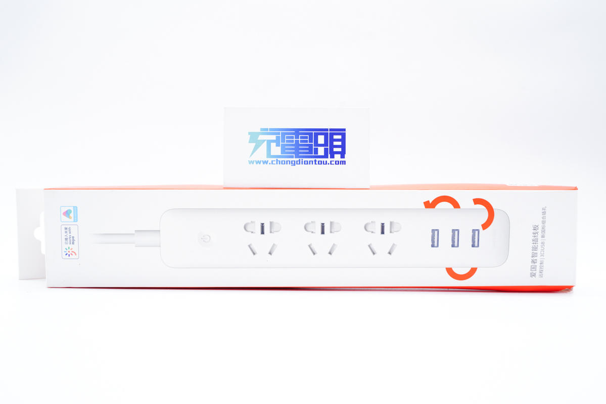 包裝盒正面印有已接入米家標(biāo)識(shí)、外觀圖以及名稱——愛國者智能插線板,產(chǎn)品可以在小米有品平臺(tái)購買。