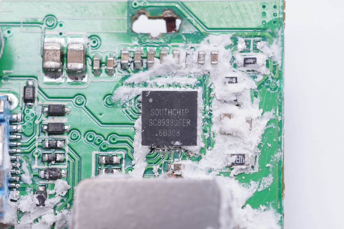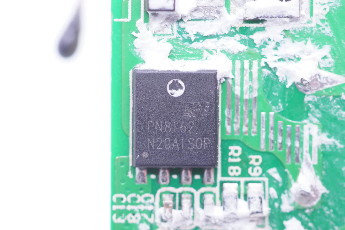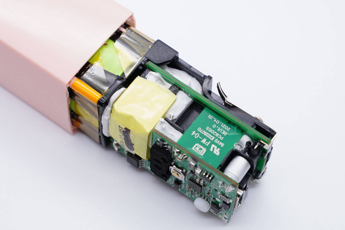 充電器開關電源采用芯朋微PN8162+PN8307H高集成方案,移動電源升降壓電路控制器采用南芯SC8933。無論是充電器模式還是移動電源模式,輸出電壓均由南芯SC2002A快充協議芯片控制。整體方案可靠而且精簡,集成度高。正是得益于巧妙的設計以及該方案的使用,產品才能做得如此小巧。