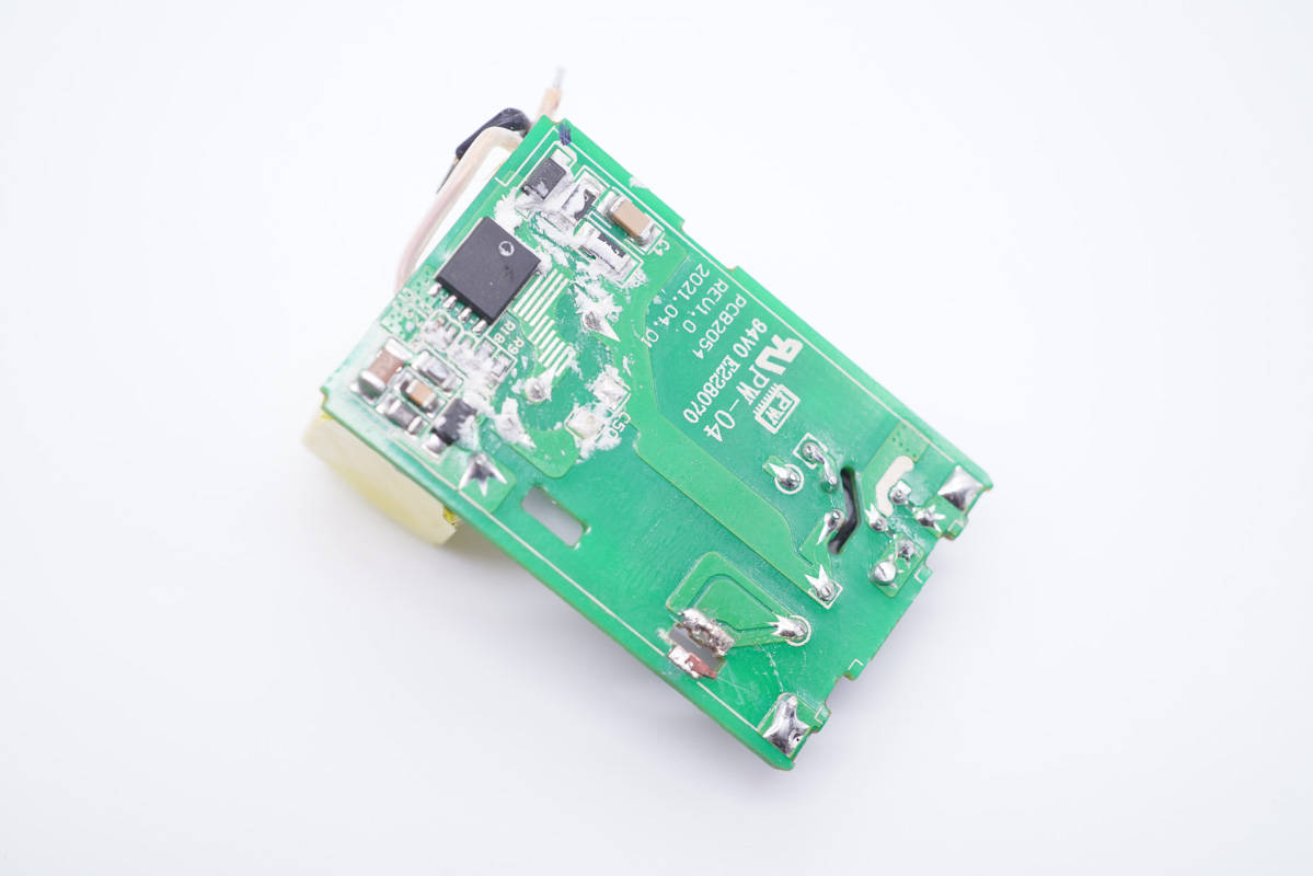 背面設有同步整流芯片、協議芯片、鋰電保護芯片等。