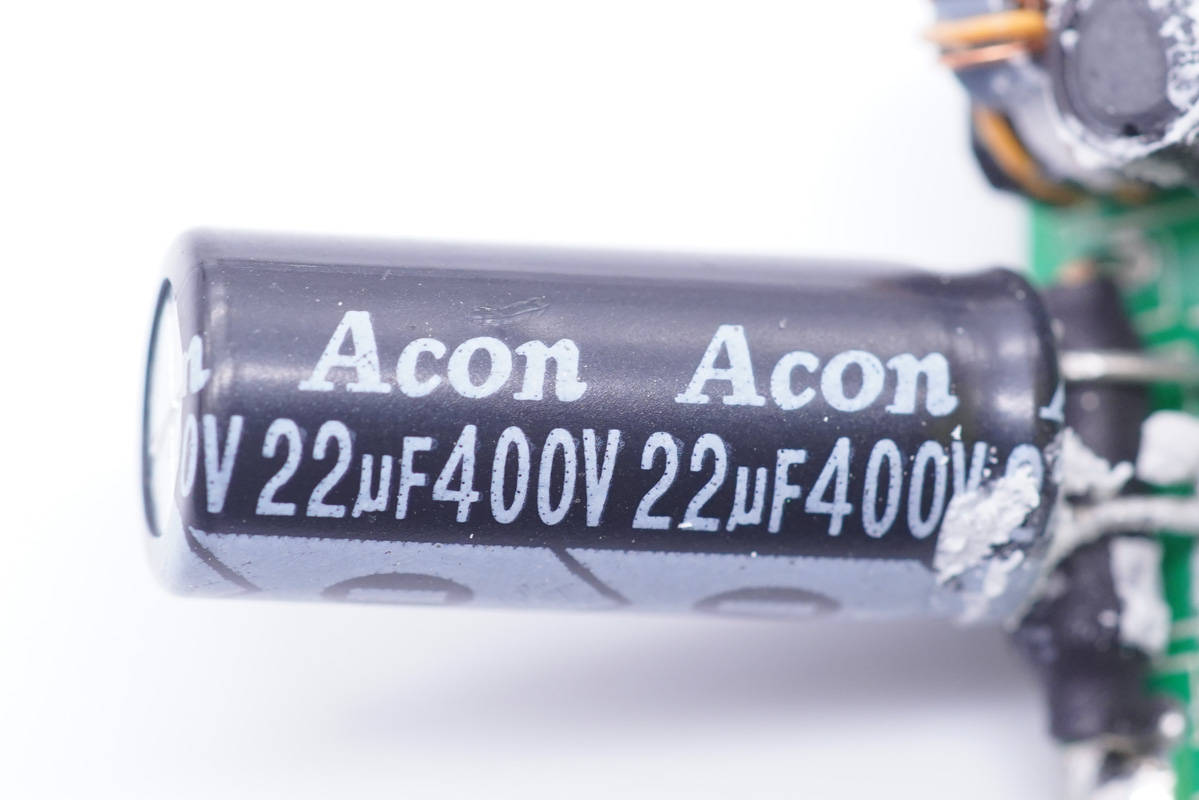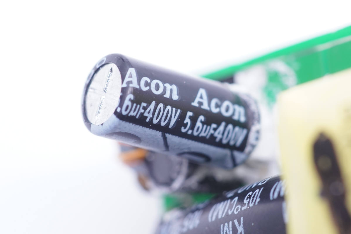 高壓濾波電解電容來自Acon中元,規格為400V 22μF。