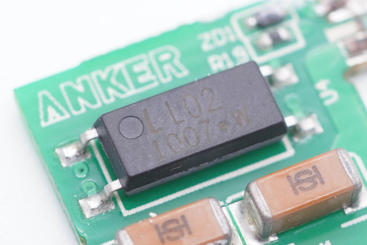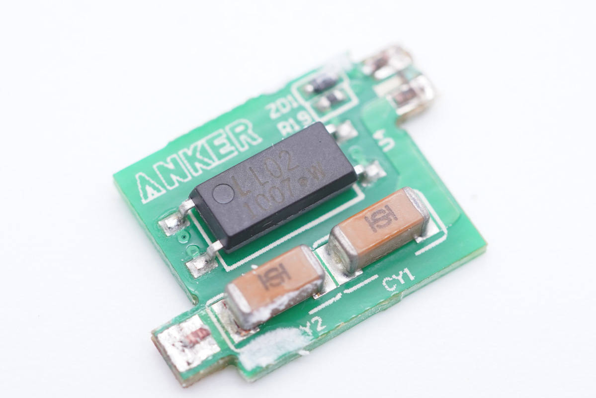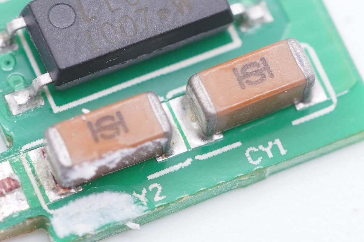 連接小板上設有光耦和兩顆貼片Y電容。