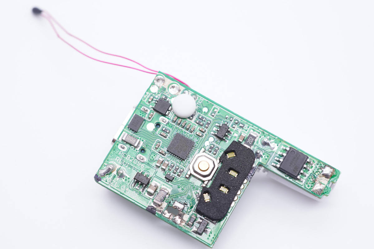 另一塊小板上設有升降壓轉換器、電感、電容和熱敏電阻等。