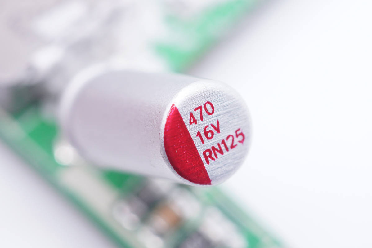 輸出濾波固態電容特寫,規格為16V 470μF。