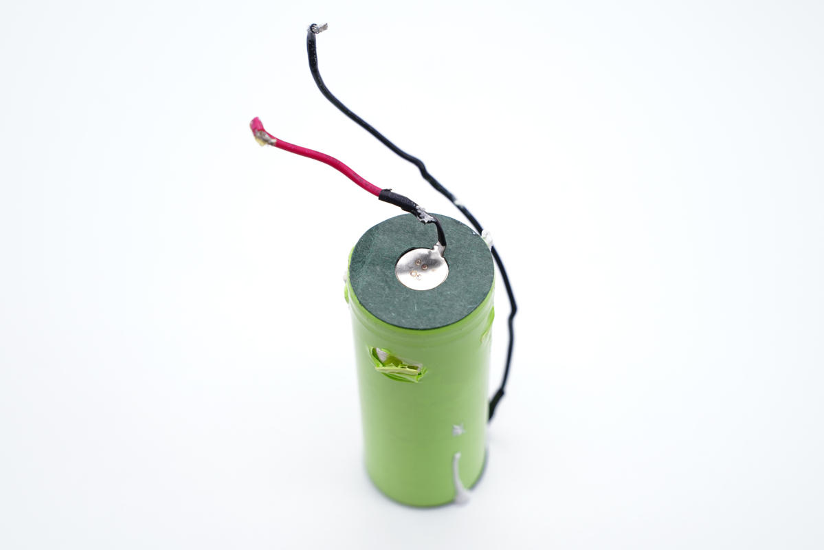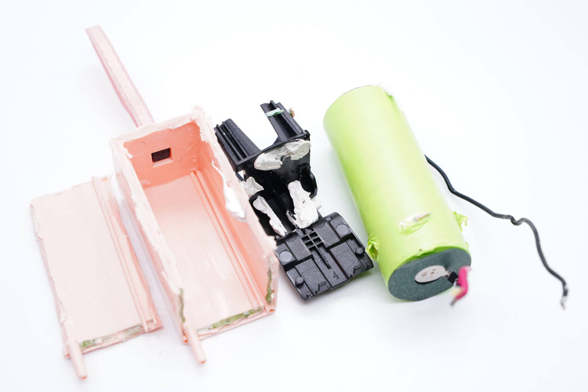 電池固定很牢固,繼續切割外殼取出電池。
