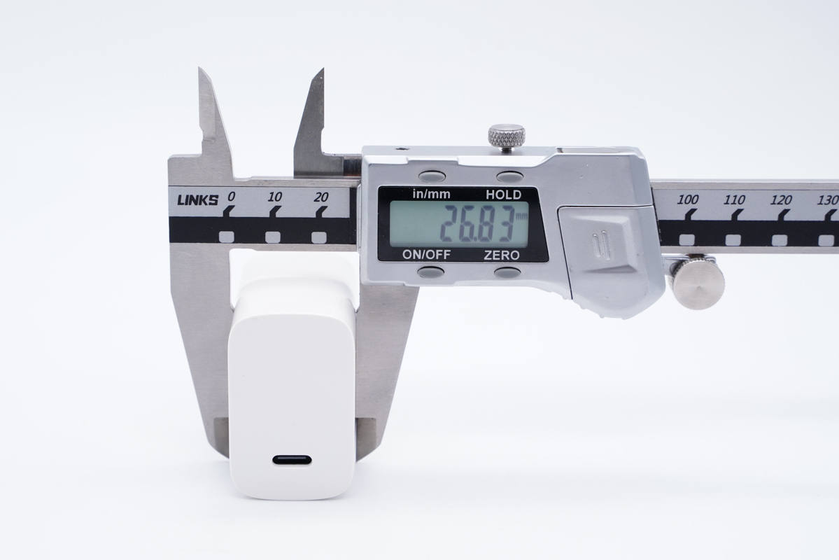 和蘋果30W充電器直觀對比,體積優勢非常明顯。