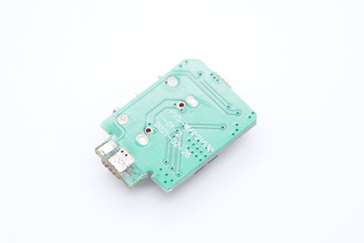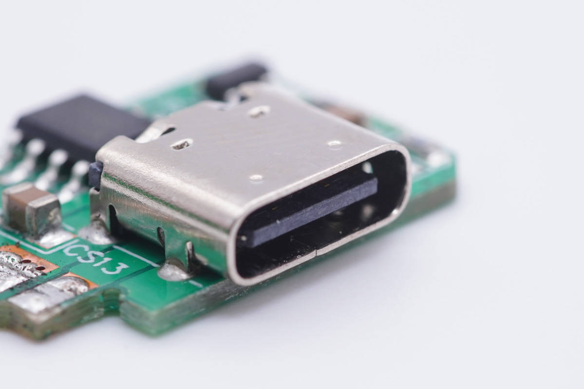 USB-C母座特寫,過孔焊接。