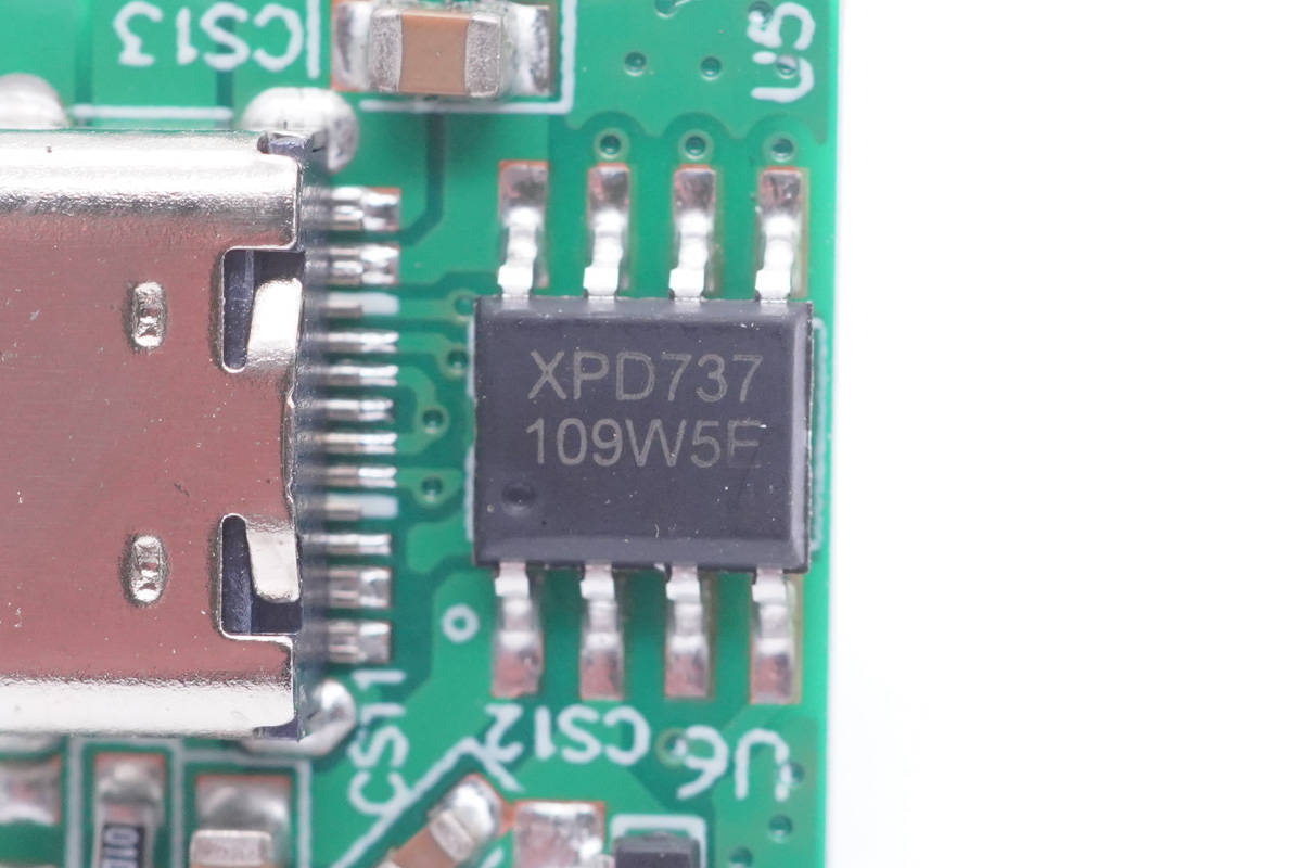 USB PD協議芯片采用云矽半導體XPD737,這款芯片已經通過了USB PD3.0認證,TID:3479。支持QC2.0/3.0/3.0+、AFC、FCP、SCP、HVSCP、PD和PPS等主流快充協議外,還支持小米CHARGE TURBO 27W協議,華為10V高壓SCP協議。