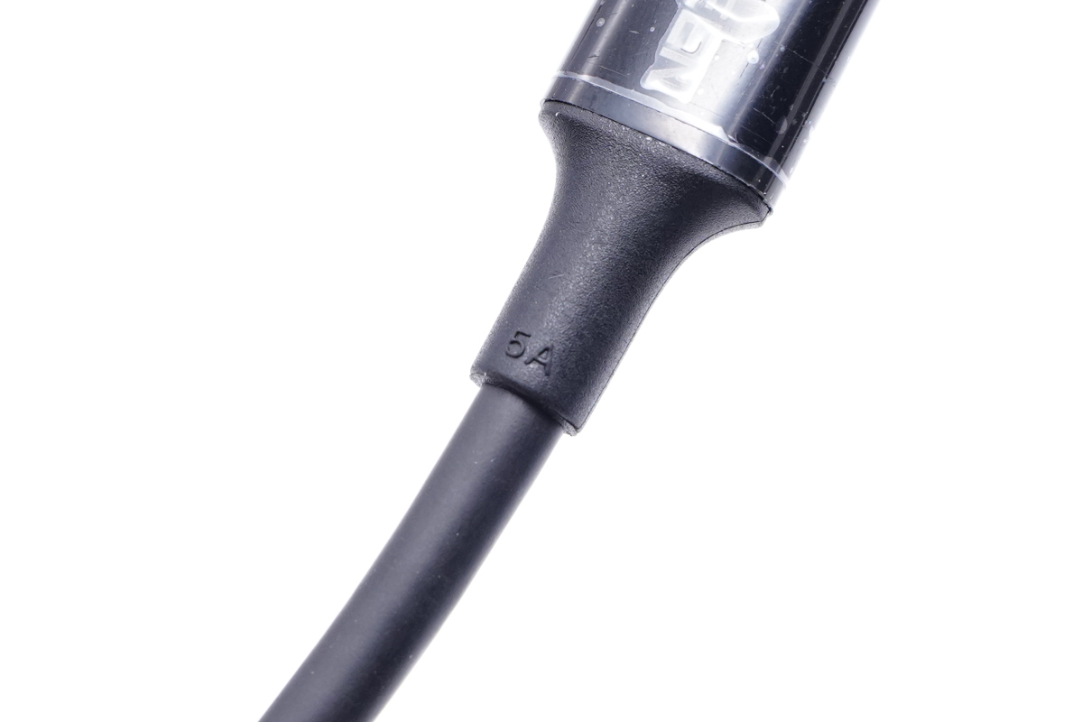 網尾采用加長設計,可以延長線材的使用壽命,5A的標識也說明了線材可以傳輸5A的大電流。